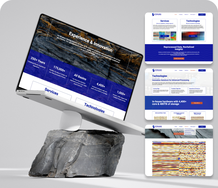 Sterling Seismic provides advanced data processing for clients in the energy sector. As their strategic marketing partner, we led a full-scale engagement—starting with in-depth customer research and interviews to uncover decision drivers, pain points, and competitive context. These insights shaped a clear messaging strategy and a stronger brand foundation that speaks directly to what their clients care about most: precision, partnership and performance.